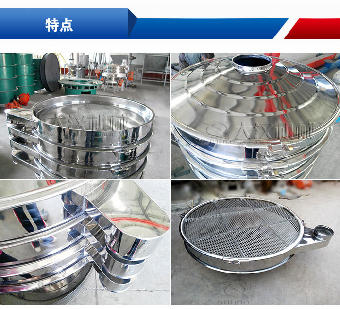 密封除塵旋振篩可以用于篩分粉末及顆粒物料,可以篩分500目以內(nèi),大漢密封除塵旋振篩廠家生產(chǎn)的旋振篩加裝彈跳球裝置,清網(wǎng)效果好,全密封結(jié)構(gòu),無(wú)粉末污染.